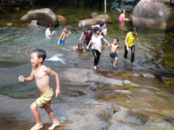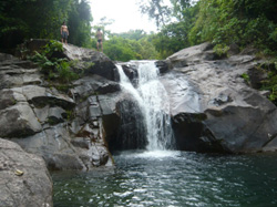 10メートルの滝。飛び込み可。