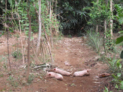 村民が飼っている子豚さん