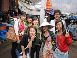 フエ大学の学生と。